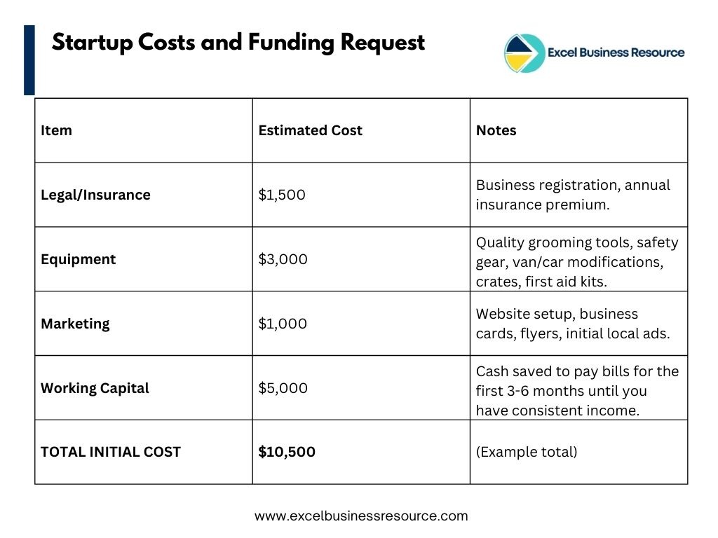 This is the numbers section. It proves your business idea is profitable. If you are seeking a loan, this must be detailed. This forms the essential pet care financial projections for your operations.