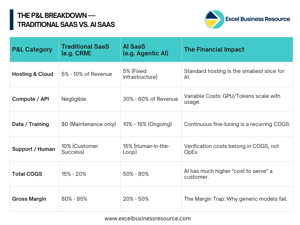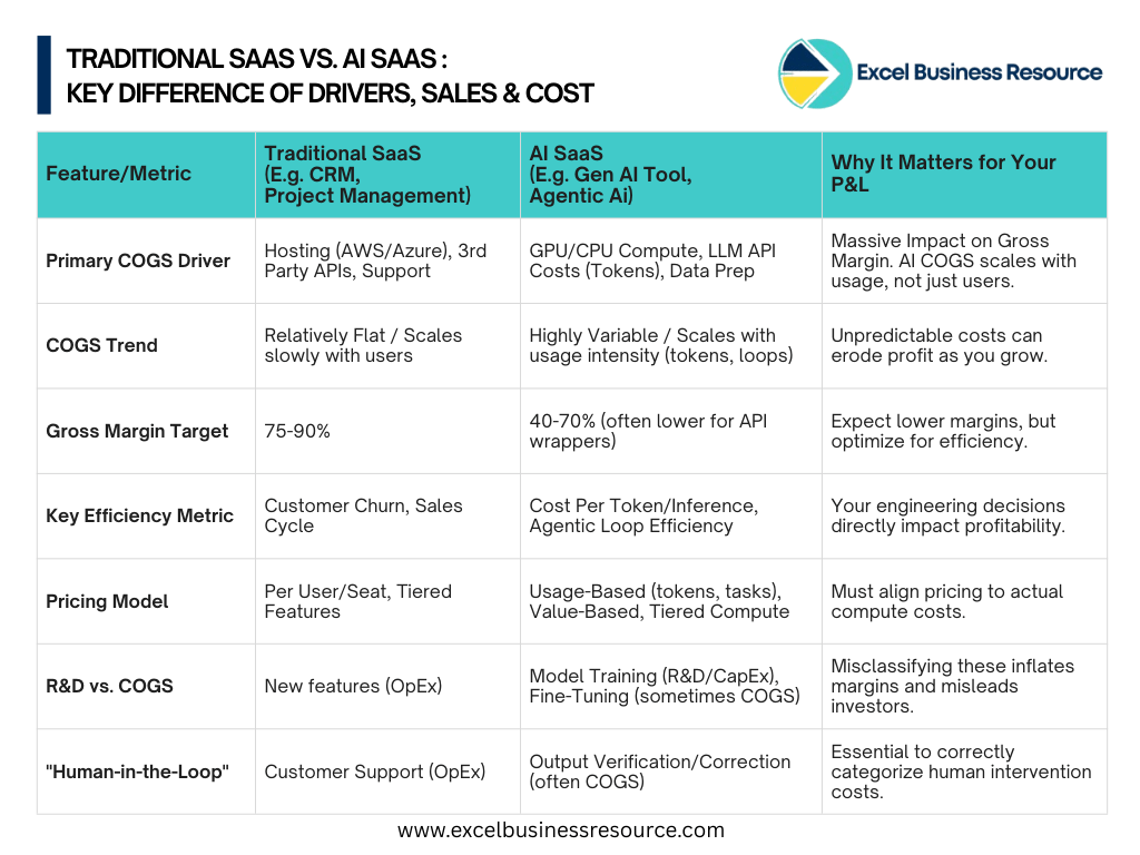 AI SaaS has flipped the script. In the world of LLMs, tokens, and agentic workflows, every “click” has a literal cost. If you don’t account for the weight of GPU compute and inference costs in your Cost of Goods Sold (COGS), your “growth” might actually be burning a hole in your bank account.
