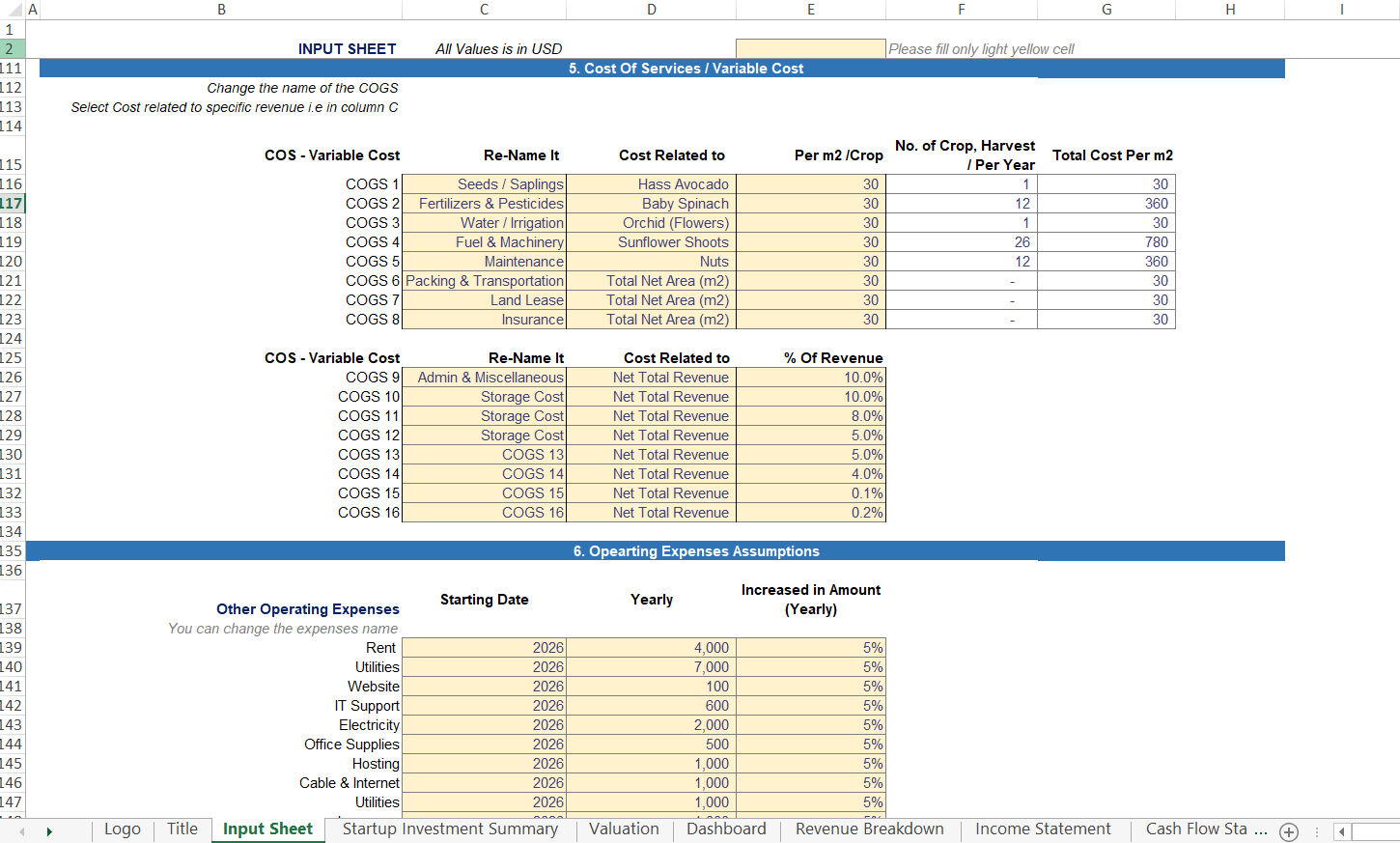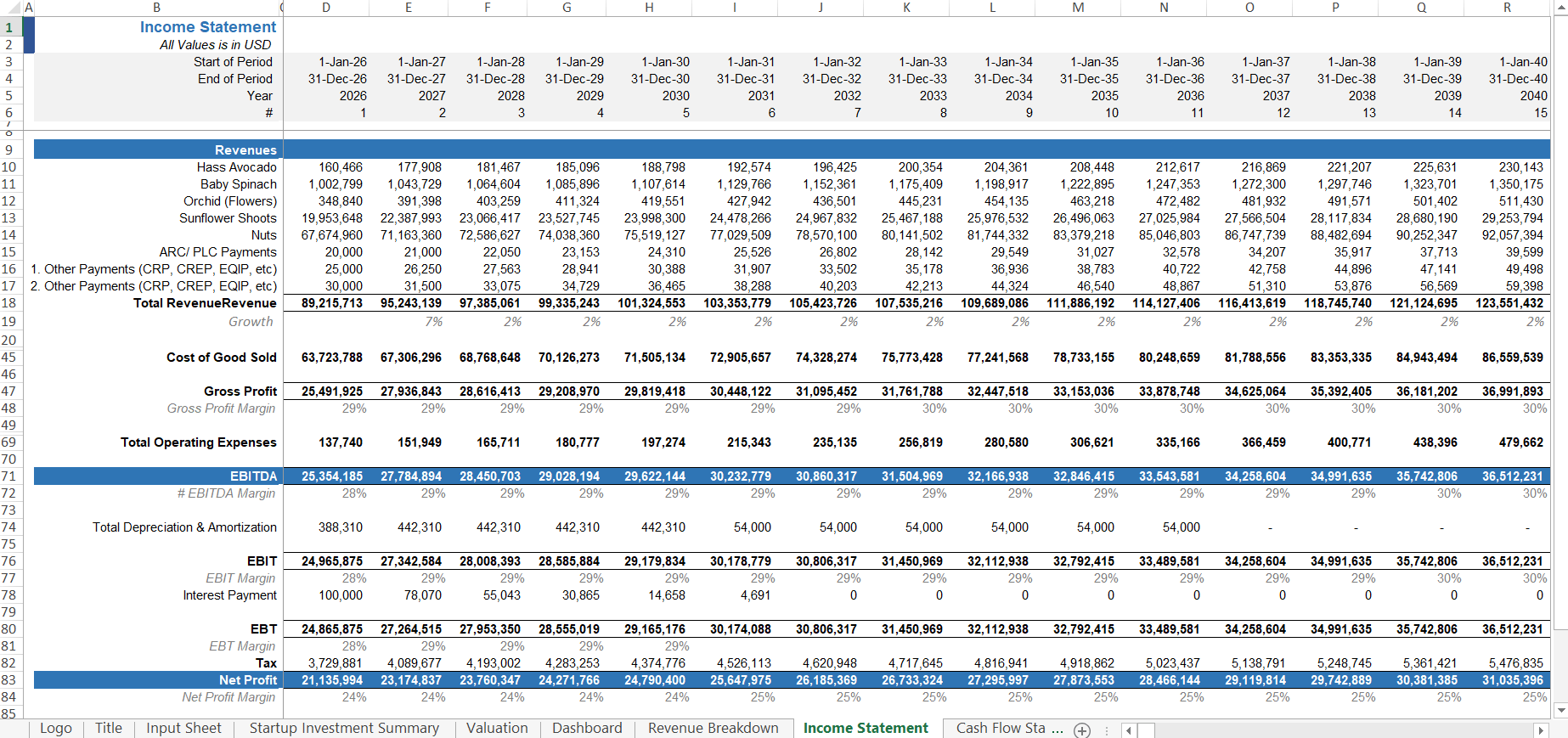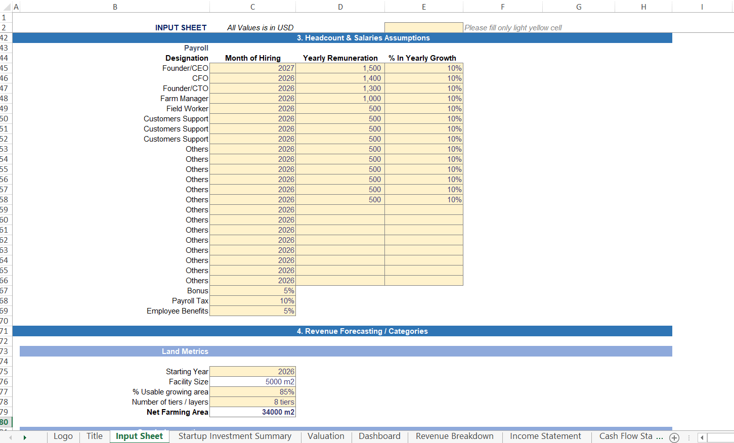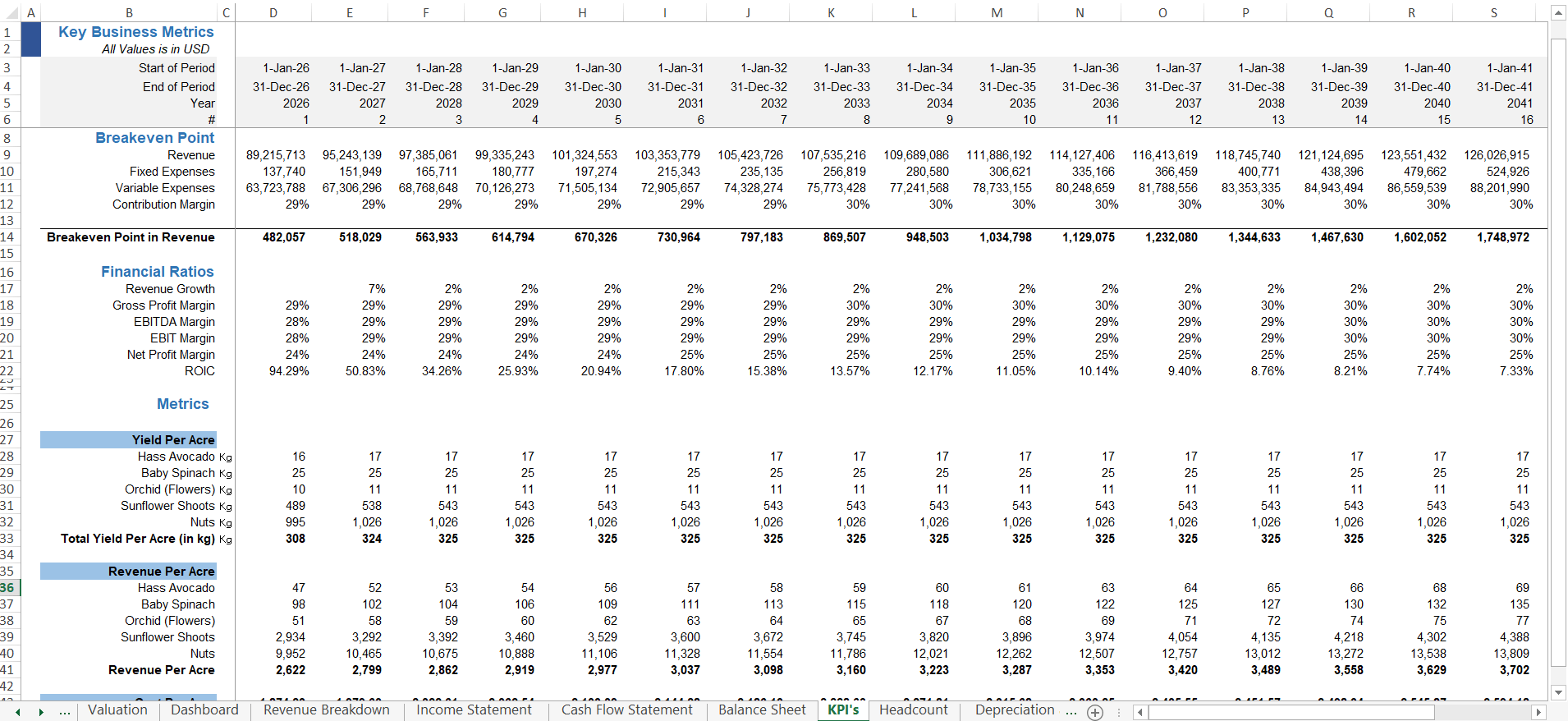 - Ideal for Hydroponics Financial Model, Aquaponics Business Model, Indoor Farming Financial Projection, CEA Financials, Urban Farming Financial Model, Soilless Cultivation Budgeting