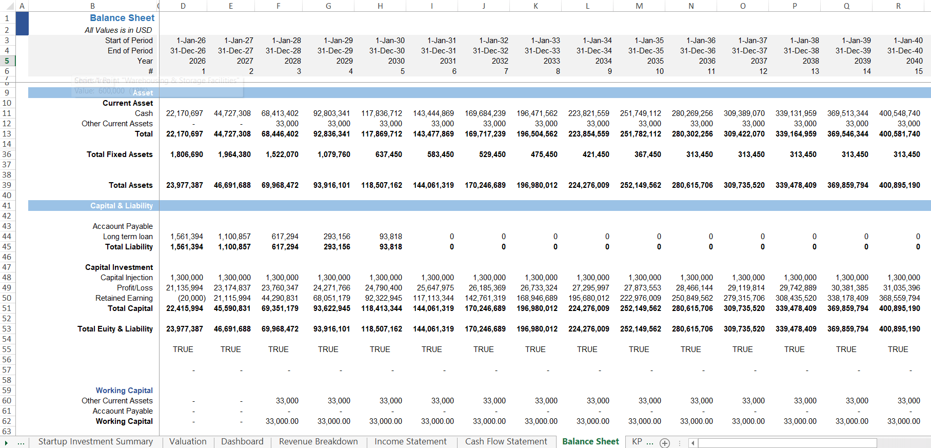 - Detailed Driver’s Assumptions i.e. Investment, R&D, Revenue & Cost Assumptions