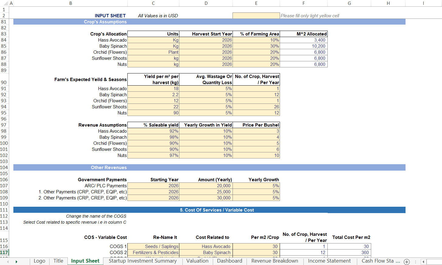 ✅ Key Features & Tabs Included: An Audit-Proof Crop Farming Financial Model
