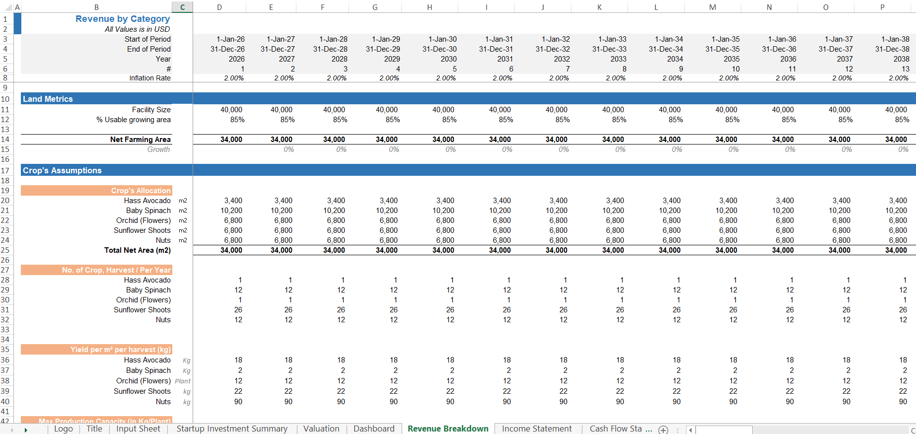 Orchard / Crop Farming Financial Model Excel Template