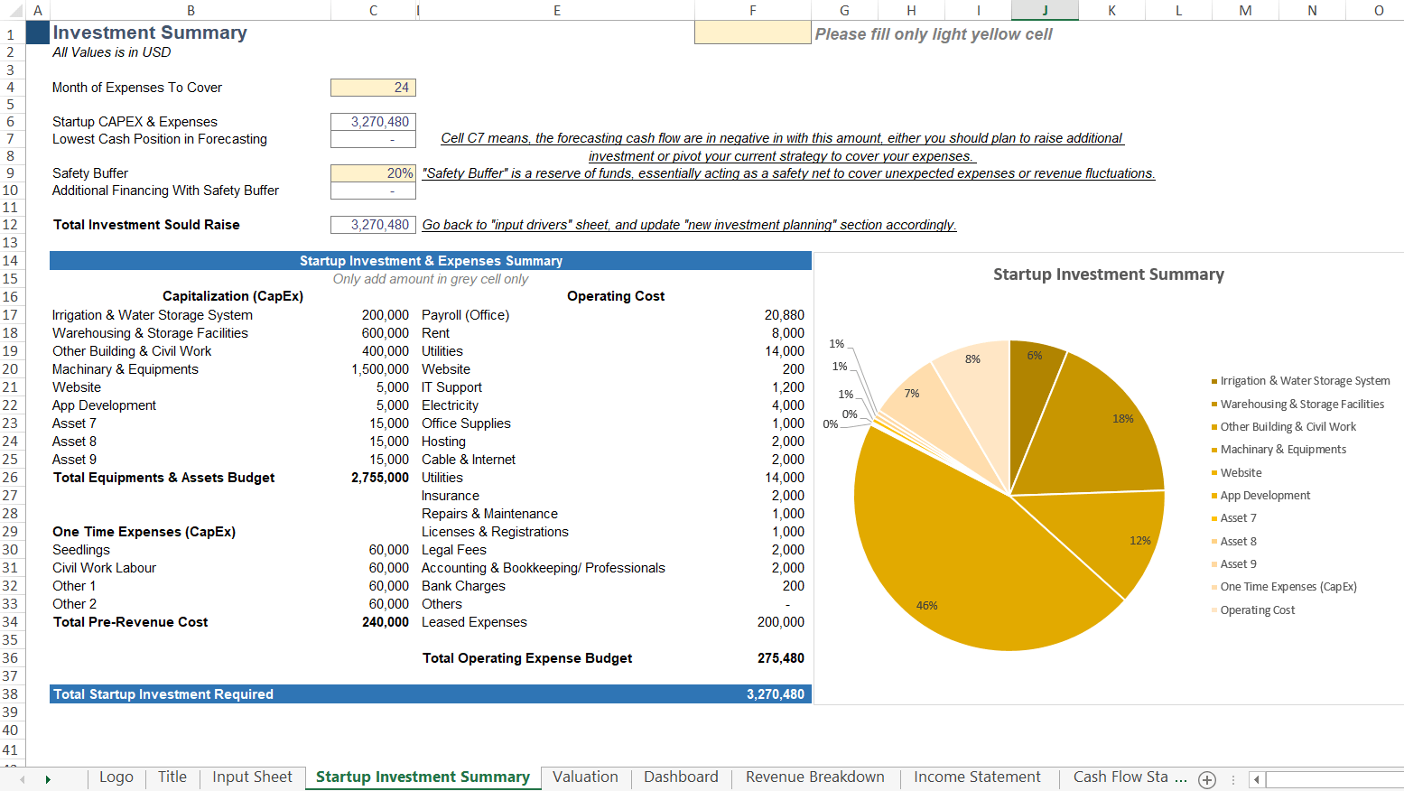 Founder Ready Vertical Farming Financial Model Excel Template